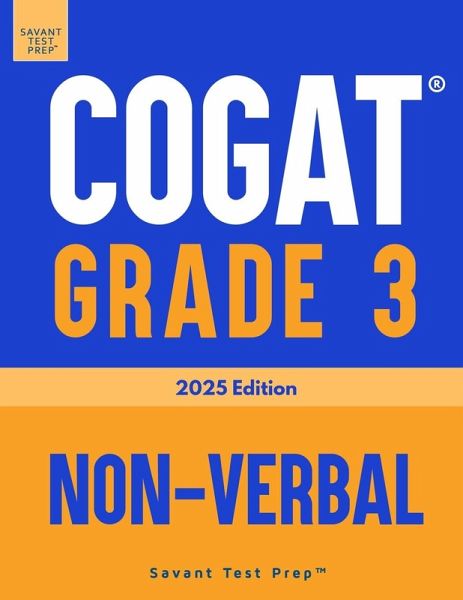 Help your child achieve their potential & ace the COGAT®! Ensure your child does their best - thanks to this resource. 3 full-length COGAT® Practice Tests for Grade 3, Non-Verbal The COGAT® is a difficult test. This resource helps your child do their best, thanks to its comprehensive content. This book provides thorough content to help your child succeed on the COGAT®. Savant Test Prep's(TM) resource includes three practice tests, answer explanations, and expert tips to help your young scholar achieve a high score. Your test prep book will include:3 Full-Length Practice Tests Answer Key With Explanations Expert Tips and Guidance for Understanding the COGAT® A high COGAT® score will help set your child up for academic success, as many Gifted & Talented (G&T) programs rely on these as a key determinant in program acceptance. The COGAT® is a difficult test. Many children have little, if any, experience answering the kinds of questions on the COGAT®. Get your child ready for answering these types of questions on test day, thanks to this book. If your goal is a bright future for your child, then help them ace the test with this book. (COGAT® is a registered trademark of Houghton Mifflin Harcourt (TM). Houghton Mifflin Harcourt (TM) does not endorse nor are they affiliated with Savant Test Prep (TM).)