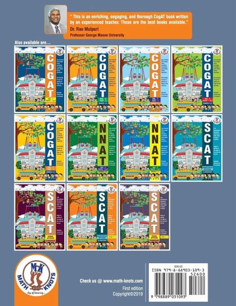 One Colorful Full-Length Test including 9 subtests with added Bonus questions. Kid friendly format for getting an edge on the real test. Detailed answer key is included.This book has one test from CogAT Form 7 Vol 1 - TEST - 1 and 2. Need additional tests you can purchase CogAT Form 7 Vol 2 - TEST - 1 and 2 or CogAT Form 7 Vol 1 - TEST - 1. ¿Also, you can visit http://www.math-knots.com.This book can be used for AAP testing in Fairfax County, Loudon County, GATE testing in California.