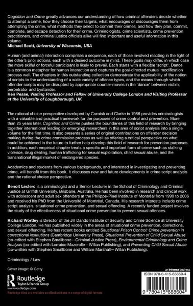 Preface Derek B. Cornish 1. The reasoning criminal: Twenty-five years on Benoit Leclerc and Richard Wortley 2. What are violent offenders thinking? Richard Felson 3. How burglars decide on targets: A computer-based scenario approach Ross Homel Stuart MacIntyre and Richard Wortley 4. The risks and rewards of motor vehicle theft: Implications for criminal persistence Heith Copes and Michael Cherbonneau 5. The rational choice perspective and the phenomenon of stalking: An examination of sex differences in behaviours rationales situational precipitators and feelings Carleen Thompson and Benoit Leclerc 6. Interpersonal scripts and victim reaction in child sexual abuse: A quantitative analysis of the offender-victim interchange Benoit Leclerc Stephen Smallbone and Richard Wortley 7. Drug dealing: Amsterdam's Red Light district Scott Jacques and Wim Bernasco 8. Human trafficking for sexual exploitation in Italy Ernesto Savona Luca Giommoni and Marina Mancuso 9. Script analysis of corruption in public procurement Marco Zanella 10. Cigarette smuggling and terrorism financing: A script approach Alexandra Hiropoulos Joshua Freilich Steven Chermak and Graeme Newman 11. Script analysis of the transnational illegal market in endangered species: Dream and reality William Moreto and Ronald V. Clarke 12. New developments in script analysis for situational crime prevention: Moving beyond offender scripts Benoit Leclerc 13. Rational choice and offender decision making: Lessons from the cognitive sciences Richard Wortley.