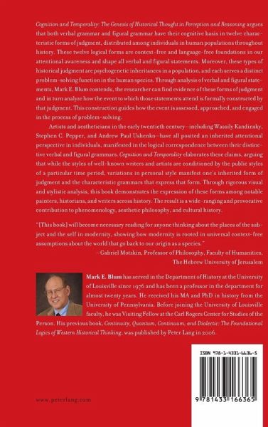 Cognition and Temporality: The Genesis of Historical Thought in Perception and Reasoning argues that both verbal grammar and figural grammar have their cognitive basis in twelve characteristic forms of judgment, distributed among individuals in human populations throughout history. These twelve logical forms are context-free and language-free foundations in our attentional awareness and shape all verbal and figural statements. Moreover, these types of historical judgment are psychogenetic inheritances in a population, and each serves a distinct problem-solving function in the human species. Through analysis of verbal and figural statements, Mark E. Blum contends, the researcher can find evidence of these forms of judgment and in turn analyze how the event to which those statements attend is formally constructed by that judgment. This construction guides how the event is assessed, approached, and engaged in the process of problem-solving.