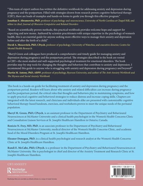 Sheryl M. Green, PhD, CPsych, is an assistant professor in the Department of Psychiatry and Behavioural Neurosciences at McMaster University and a clinical health psychologist in the Women's Health Concerns Clinic and Consultation Liaison Services at St. Joseph's Healthcare Hamilton in Ontario, Canada. Benicio N. Frey, MD, PhD, is an associate professor in the Department of Psychiatry and Behavioural Neurosciences at McMaster University, medical director of the Women's Health Concerns Clinic, and academic head of the Mood Disorders Program at St. Joseph's Healthcare Hamilton. Eleanor Donegan, PhD, is a clinical health psychologist and research analyst at the Women's Health Concerns Clinic at St. Joseph's Healthcare Hamilton. Randi E. McCabe, PhD, CPsych, is a professor in the Department of Psychiatry and Behavioural Neurosciences at McMaster University. She is psychologist in chief and director of the Anxiety Treatment and Research Clinic at St. Joseph's Healthcare Hamilton.
