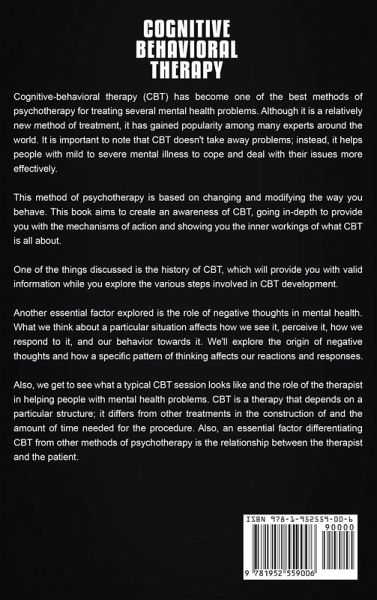 If you've always wanted mental and emotional stability, but you've been struggling with anxiety, intrusive thoughts, worries, and depression, then keep reading. Are you sick and tired of not being able to achieve psychological peace and a sense of well-being? Have you tried a countless number of solutions, but nothing seems to work for more than a few weeks? Do you finally want to say goodbye to self-harm and discover something that works for you? If so, then you've come to the right place. You see, mental tranquility doesn't have to be complicated. Even if you're tired, withdrawn, in self-denial, or have a substance abuse problem, it's easier than you think. A report in The National Center for Biotechnology Information (NCBI) demonstrated the efficiency of CBT is very high, with its most potent factor being the management of anxiety disorders and general stress. According to The Sage Journal, CBT is a direct, time-limited, structured treatment that can be used to treat a variety of mental disorders. In other words, you can achieve mental wellness without wasting your time! Here's just a tiny fraction of what you'll discover:The various ways to rewire your brain with Mindfulness-Based Cognitive Therapy (MBCT) The three meditation techniques to help foster CBT The four things you should know about stopping a panic attack with mindfulness Why trying to reject thoughts is hurting your progress-and what to do instead How to reach mental and emotional wellness without sacrificing your comfort zone Five harmful myths the Internet tells you about depression and panic attacks How to save time with just one straightforward change in your routine A cool trick used by Jon Kabat-Zinn which helps you rewire your brain The biggest mistake people make when having a panic attack The three best therapies to help you with your mental health journey ...and much, much more! Take a second to imagine how you'll feel once you finally have a balanced life, and how your family and friends will react when you are cheerfully living a genuinely fulfilled life. Even if you're suffering from major depression or bipolar disorder, you can get psychological wellbeing with Cognitive-Based Therapy (CBT). If you have a burning desire for self-actualization and a fantastic perception of reality, then scroll up and click "add to cart."