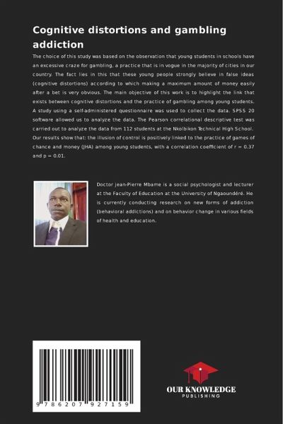The choice of this study was based on the observation that young students in schools have an excessive craze for gambling, a practice that is in vogue in the majority of cities in our country. The fact lies in this that these young people strongly believe in false ideas (cognitive distortions) according to which making a maximum amount of money easily after a bet is very obvious. The main objective of this work is to highlight the link that exists between cognitive distortions and the practice of gambling among young students. A study using a self-administered questionnaire was used to collect the data. SPSS 20 software allowed us to analyze the data. The Pearson correlational descriptive test was carried out to analyze the data from 112 students at the Nkolbikon Technical High School. Our results show that: the illusion of control is positively linked to the practice of games of chance and money (JHA) among young students, with a correlation coefficient of r = 0.37 and p = 0.01.