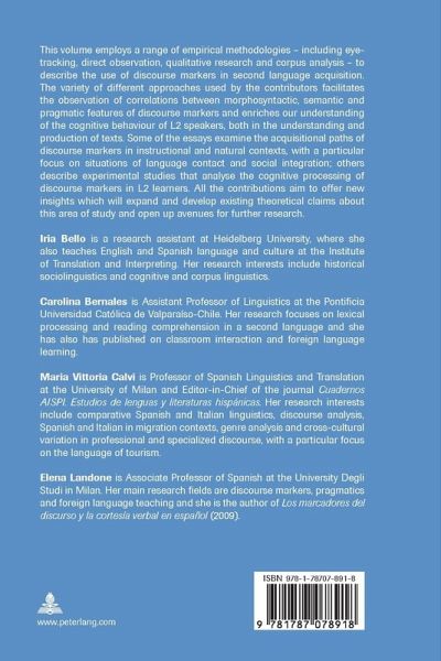 This volume employs a range of empirical methodologies - including eyetracking, direct observation, qualitative research and corpus analysis - to describe the use of discourse markers in second language acquisition. The variety of different approaches used by the contributors facilitates the observation of correlations between morphosyntactic, semantic and pragmatic features of discourse markers and enriches our understanding of the cognitive behaviour of L2 speakers, both in the understanding and production of texts. Some of the essays examine the acquisitional paths of discourse markers in instructional and natural contexts, with a particular focus on situations of language contact and social integration; others describe experimental studies that analyse the cognitive processing of discourse markers in L2 learners. All the contributions aim to offer new insights which will expand and develop existing theoretical claims about this area of study and open up avenues for further research.