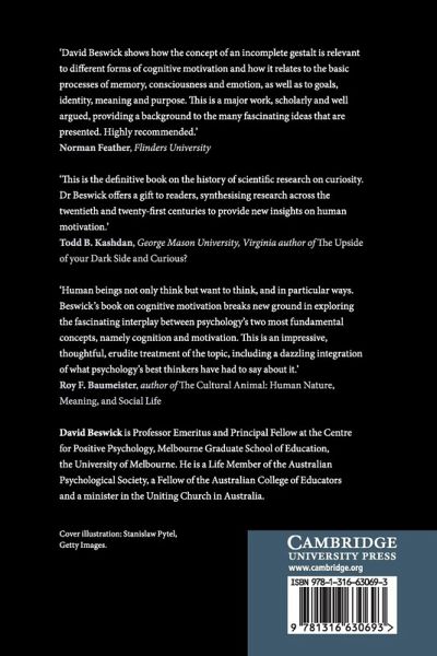 Introduction: the incomplete gestalt Part I. Forms of Cognitive Motivation: 1. Towards a general theory of cognitive motivation 2. Curiosity 3. Intrinsic motivation 4. Cognitive dissonance 5. Achievement motivation 6. Agency, efficacy and attribution Part II. Basic Processes and Applications: 7. Working memory, consciousness, and attention 8. The function of emotion in cognitive motivation 9. Goals 10. Intentions 11. Identity 12. Purpose and meaning.