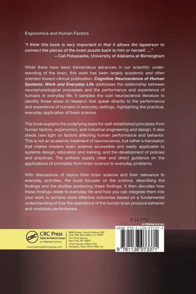 While there have been tremendous advances in our scientific understanding of the brain, this work has been largely academic, and often oriented toward clinical publication. Cognitive Neuroscience of Human Systems: Work and Everyday Life addresses the relationship between neurophysiological processes and the performance and experience of humans in everyday life. It samples the vast neuroscience literature to identify those areas of research that speak directly to the performance and experience of humans in everyday settings, highlighting the practical, everyday application of brain…mehr
