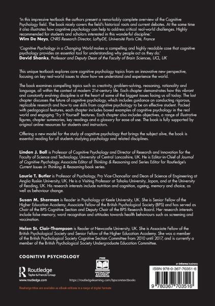 Linden J. Ball is Professor of Cognitive Psychology and Director of Research and Innovation for the Faculty of Science and Technology, University of Central Lancashire, UK. He is Editor-in-Chief of Journal of Cognitive Psychology, Associate Editor of Thinking & Reasoning and Series Editor for Routledge's Current Issues in Thinking & Reasoning book series. Laurie T. Butler is Professor of Psychology, Pro Vice-Chancellor and Dean of Science of Engineering at Anglia Ruskin University, UK. He is a Visiting Professor at Tohoku University, Japan, and at the University of Reading, UK. His research interests include nutrition and cognition, ageing, memory and choice, as well as behaviour change. Susan M. Sherman is Reader in Psychology at Keele University, UK. She is Senior Fellow of the Higher Education Academy, Associate Fellow of the British Psychological Society (BPS) and has served as Chair of the BPS Cognitive Section and Deputy Chair of the BPS Research Board. Her research interests include false memory, word recognition and attitudes towards health behaviours such as screening and vaccination. Helen St. Clair-Thompson is Reader at Newcastle University, UK. She is Associate Fellow of the British Psychological Society and Senior Fellow of the Higher Education Academy. She was a member of the British Psychological Society Cognitive Section Committee from 2010 until 2017, and is currently a member of the British Psychological Society Undergraduate Education Committee.