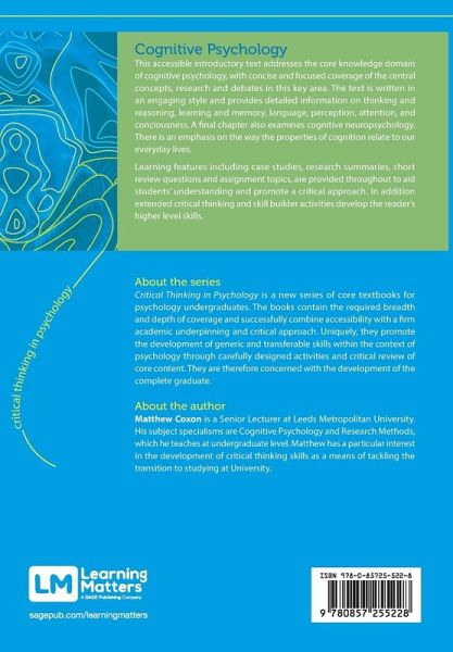 A new and engaging key text for cognitive psychology providing core knowledge plus learning and skills support for all undergraduate psychology students.