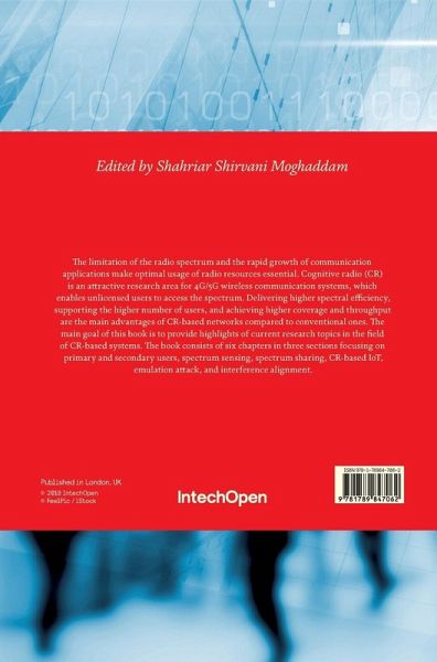 The limitation of the radio spectrum and the rapid growth of communication applications make optimal usage of radio resources essential. Cognitive radio (CR) is an attractive research area for 4G/5G wireless communication systems, which enables unlicensed users to access the spectrum. Delivering higher spectral efficiency, supporting the higher number of users, and achieving higher coverage and throughput are the main advantages of CR-based networks compared to conventional ones. The main goal of this book is to provide highlights of current research topics in the field of CR-based systems. The book consists of six chapters in three sections focusing on primary and secondary users, spectrum sensing, spectrum sharing, CR-based IoT, emulation attack, and interference alignment.