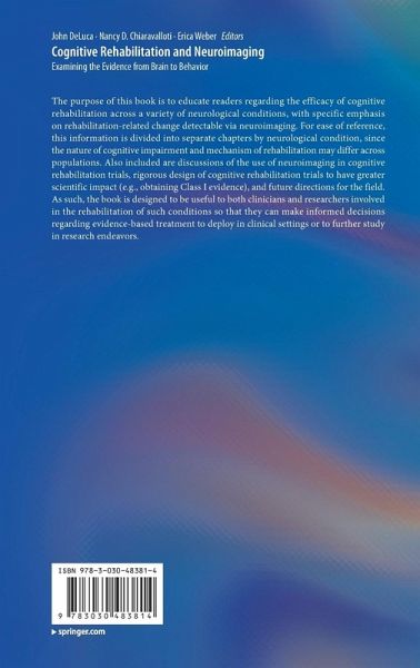 The purpose of this book is to educate readers regarding the efficacy of cognitive rehabilitation across a variety of neurological conditions, with specific emphasis on rehabilitation-related change detectable via neuroimaging. For ease of reference, this information is divided into separate chapters by neurological condition, since the nature of cognitive impairment and mechanism of rehabilitation may differ across populations. Also included are discussions of the use of neuroimaging in cognitive rehabilitation trials, rigorous design of cognitive rehabilitation trials to have greater scientific impact (e.g., obtaining Class I evidence), and future directions for the field. As such, the book is designed to be useful to both clinicians and researchers involved in the rehabilitation of such conditions so that they can make informed decisions regarding evidence-based treatment to deploy in clinical settings or to further study in research endeavors.