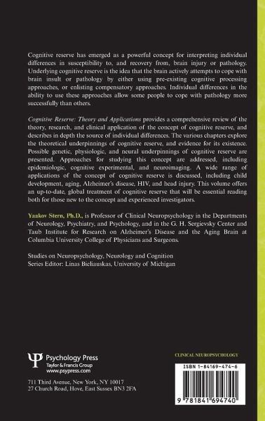 This volume provides a comprehensive review of theory, research and clinical application of the cognitive reserve. Chapters explore the theoretical underpinnings of cognitive reserve, and evidence for its existence.