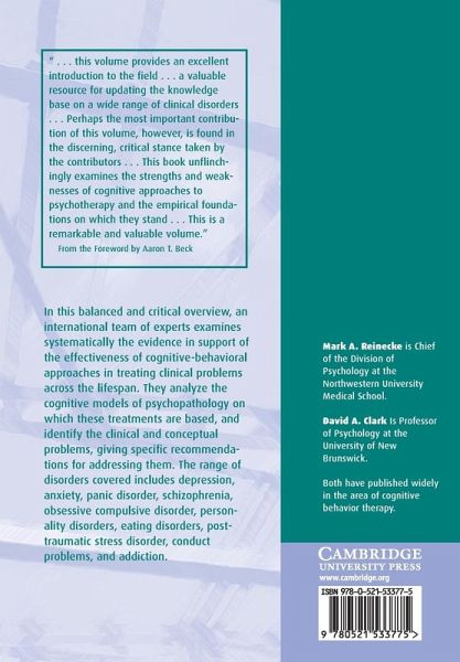In this balanced and critical overview, an international team of experts examines systematically the evidence in support of the effectiveness of cognitive-behavioral approaches to treating clinical problems across the lifespan. They analyse the cognitive models of psychopathology on which these treatments are based, and identify the clinical and conceptual problems, giving specific recommendations for addressing them. The range of disorders covered includes depression, anxiety, panic disorder, schizophrenia, OCD, personality disorders, eating disorders, post-traumatic stress disorder, conduct problems and addiction.