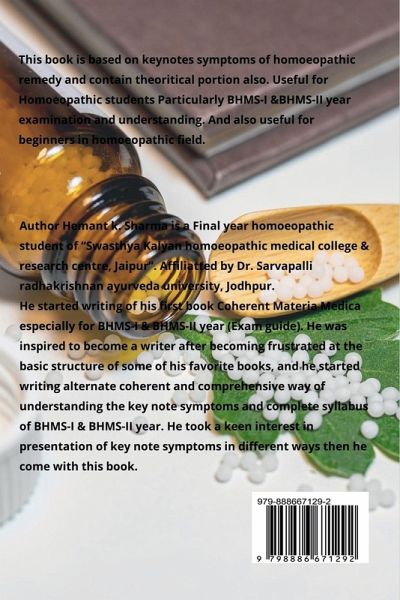 This book is based on keynotes symptoms of homoeopathic remedy and contain theoritical portion also. Useful for Homoeopathic students Particularly BHMS-I &BHMS-II year examination and understanding. And also useful for beginners in homoeopathic field. This book is based on keynotes symptoms of homoeopathic remedy and contain theoritical portion also. Useful for Homoeopathic students Particularly BHMS-I &BHMS-II year examination and understanding. And also useful for beginners in homoeopathic field.