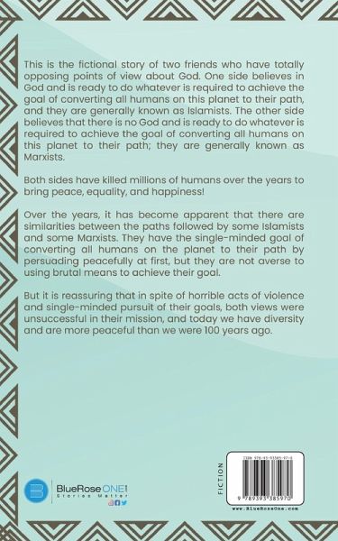 The fictional story of two friends who have totally opposing point of view about THE GOD. One side believes in God and is ready to do whatever is required to achieve the goal of converting all humans on this planet to their path and are generally known as Islamists. The other side believes that there is NO GOD and is ready to do whatever is required to achieve the goal of converting all humans on this planet to their path and are generally known as Marxists.It is becoming apparent, over the years, that there are similarities between the path followed by SOME of the Islamists and SOME of the Marxists. They have single-minded goal of converting all humans on the planet to their path, by persuading peacefully at first but are not averse to using brutal means to achieve their goal.