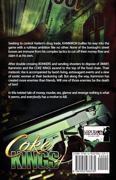 Seeking to control Harlem's drug trade, KAMMRON bullies his way into the game with a ruthless ambition like no other. None of the borough's street bosses are immune from his complex tactics to cut off their money flow and claim it as his own. After double-crossing BONKERS and sending shooters to dispose of JIMMY, Kammron and the COKE KINGS ascend to the top of the food chain. Their meteoric rise is accompanied by lavish living, extravagant events and a slew of exotic women at their beckoning call. But along the way, Kammron has created more enemies than friends. Will one of those enemies be the death of him? In this twisted tale of money, murder, sex, glamor and revenge nothing is what it seems, and everybody has a motive to kill.