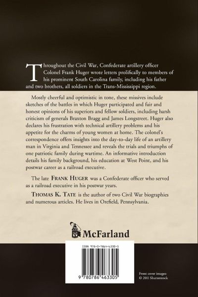 Mostly cheerful and optimistic in tone, these missives include sketches of the battles in which Huger participated and fair and honest opinions of his superiors and fellow soldiers, including harsh criticism of generals Braxton Bragg and James Longstreet. Huger also declares his frustration with technical artillery problems and his appetite for the charms of young women at home. The colonel's correspondence offers insights into the day-to-day life of an artillery man in Virginia and Tennessee and reveals the trials and triumphs of one patriotic family during wartime. An informative introduction details his family background, his education at West Point, and his postwar career as a railroad executive.