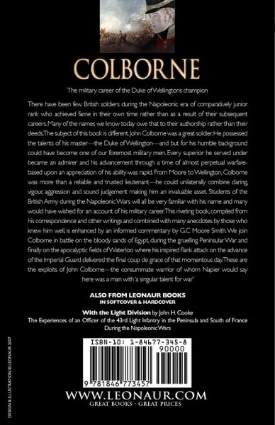 The military career of the Duke of Wellingtons champion There have been few British soldiers during the Napoleonic era of comparatively junior rank who achieved fame in their own time rather than as a result of their subsequent careers. Many of the names we know today owe that to their authorship rather than their deeds. The subject of this book is different. John Colborne was a great soldier. He possessed the talents of his master-the Duke of Wellington-and but for his humble background could have become one of our foremost military men. Every superior he served under became an admirer and his advancement through a time of almost perpetual warfare-based upon an appreciation of his ability-was rapid. From Moore to Wellington, Colborne was more than a reliable and trusted lieutenant-he could unilaterally combine daring, vigour, aggression and sound judgement making him an invaluable asset. Students of the British Army during the Napoleonic Wars will all be very familiar with his name and many would have wished for an account of his military career. This riveting book, compiled from his correspondence and other writings and combined with many anecdotes by those who knew him well, is enhanced by an informed commentary by G.C Moore Smith. We join Colborne in battle on the bloody sands of Egypt, during the gruelling Peninsular War and finally on the apocalyptic fields of Waterloo where his inspired flank attack on the advance of the Imperial Guard delivered the final coup de grace of that momentous day. These are the exploits of John Colborne-the consummate warrior of whom Napier would say here was a man with 'a singular talent for war'.