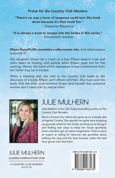 Ellison Russell's life resembles a rollercoaster ride. And rollercoasters make her ill. Her daughter Grace has a crush on a boy Ellison doesn't trust and she's taken to hosting wild parties when Ellison goes out for the evening. Worse, the bank which represents Grace's inheritance from her father may be in trouble. When a meeting with the chef at the country club leads to the discovery of a body, Ellison can't afford cold feet. She must save the bank, find the killer, and convince Grace (and herself) that powerful women don't need men to rescue them.