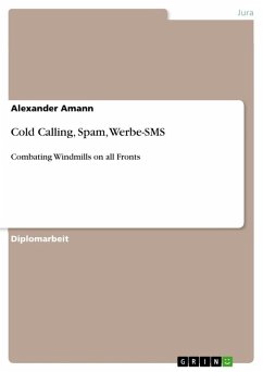 Diplomarbeit aus dem Jahr 2008 im Fachbereich Jura - Europarecht, Völkerrecht, Internationales Privatrecht, Note: 2,0, Leopold-Franzens-Universität Innsbruck, Sprache: Deutsch, Abstract: Diese Diplomarbeit "Cold Calling, Spam, Werbe-SMS - Combating Windmills on all Fronts"problematisiert das sehr aktuelle Thema "IKT-gestützte" Direktwerbung aus europarechtlicher Sicht. Sie behandelt als Schwerpunkt wichtige einschlägige Gemeinschaftsrechtsakte für die im Titel genannten Direktwerbearten; d.h. für Direktwerbung, die sich moderner Informations- und (Tele-)Kommunikationstechnologien als Träger bzw. Medium bedient.
