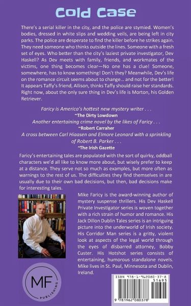 There's a serial killer in the city, and the police are stymied. Women's bodies, dressed in white slips and wedding veils, are being left in city parks. The police are desperate to find the killer before he strikes again. They need someone who thinks outside the lines. Someone with a fresh set of eyes. Who better than the city's laziest private investigator, Dev Haskell? As Dev meets with the family, friends, and workmates of the victims, one thing becomes clear-No one has a clue! Someone, somewhere, has to know something! Don't they? Meanwhile, Dev's life on the romance circuit seems about to change... and not for the better! It appears Taffy's friend, Allison, thinks Taffy should raise her standards. Right now, about the only sure thing in Dev's life is Morton, his Golden Retriever."Cold Case is Dev Haskell at his best. Between Detective Sergeant Norris Manning trying to charge him with every crime in the city and Allison Dankwell attempting to ruin his romance with Taffy, Dev has his hands full. What better time to try and solve 6 cold case murders..."