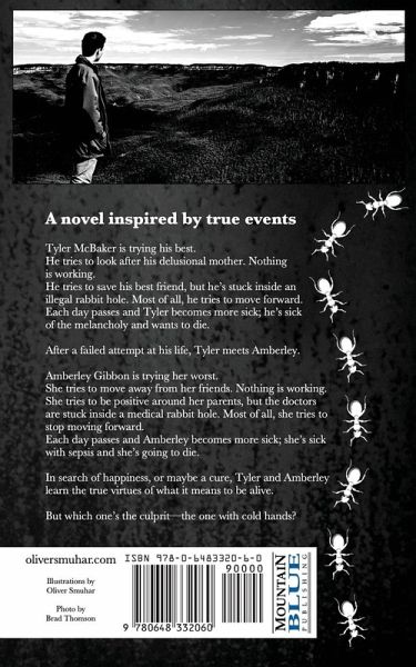 A novel inspired by true events. Tyler McBaker is trying his best. He tries to look after his delusional mother. Nothing is working. He tries to save his best friend, but he's stuck inside an illegal rabbit hole. Most of all, he tries to move forward. Each day passes and Tyler becomes more sick; he's sick of the melancholy and wants to die. After a failed attempt at his life, Tyler meets Amberley. Amberley Gibbon is trying her worst. She tries to move away from her friends. Nothing is working. She tries to be positive around her parents, but the doctors are stuck inside a medical rabbit hole. Most of all, she tries to stop moving forward. Each day passes and Amberley becomes more sick; she's sick with sepsis and she's going to die. In search of happiness, or maybe a cure, Tyler and Amberley learn the true virtues of what it means to be alive. But which one's the culprit-the one with cold hands?