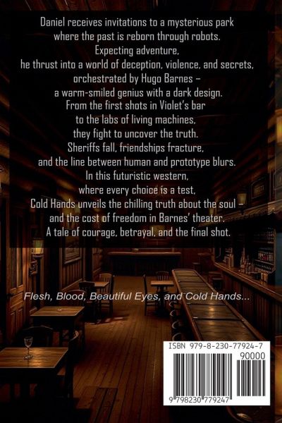 Daniel receives invitations to a mysterious park where the past is reborn through robots. Expecting adventure, he thrust into a world of deception, violence, and secrets, orchestrated by Hugo Barnes - a warm-smiled genius with a dark design. From the first shots in Violet's bar to the labs of living machines, they fight to uncover the truth. Sheriffs fall, friendships fracture, and the line between human and prototype blurs. In this futuristic western, where every choice is a test, Cold Hands unveils the chilling truth about the soul - and the cost of freedom in Barnes' theater. A tale of courage, betrayal, and the final shot.