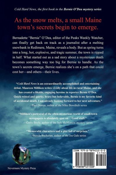 Bernadette "Bernie" O'Dea, editor of the Peaks Weekly Watcher, can finally get back on track as a journalist after a melting snowbank in Redimere, Maine, reveals a body. But as spring turns into a long, hot, explosive and tragic summer, the town is ripped in half. What started out as a sad story about a mysterious death becomes something way too big for Bernie to handle. As the town's secrets emerge, Bernie realizes she's on a path that could cost her-and others-their lives.