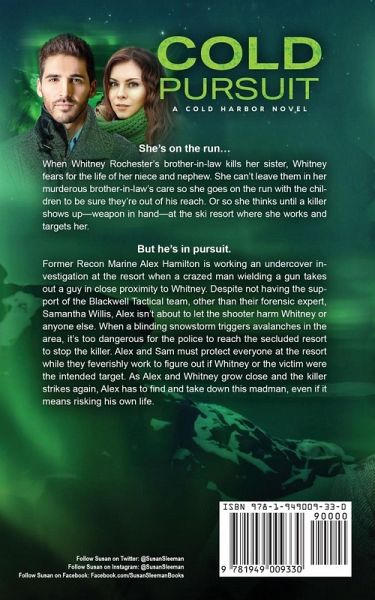 She's on the run… When Whitney Rochester's brother-in-law kills her sister, Whitney fears for the life of her niece and nephew. She can't leave them in her murderous brother-in-law's care so she goes on the run with the children to be sure they're out of his reach. Or so she thinks until a killer shows up-weapon in hand-at the ski resort where she works and targets her. But he's in pursuit. Former Recon Marine Alex Hamilton is working an undercover investigation at the resort when a crazed man wielding a gun takes out a guy in close proximity to Whitney. Despite not having the support of the Blackwell Tactical team, other than their forensic expert, Samantha Willis, Alex isn't about to let the shooter harm Whitney or anyone else. When a blinding snowstorm triggers avalanches in the area, it's too dangerous for the police to reach the secluded resort to stop the killer. Alex and Sam must protect everyone at the resort while they feverishly work to figure out if Whitney or the victim were the intended target. As Alex and Whitney grow close and the killer strikes again, Alex has to find and take down this madman, even if it means risking his own life.