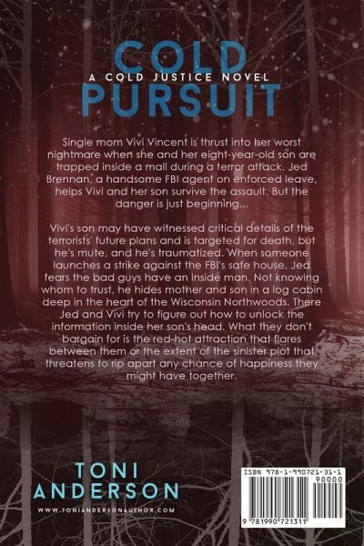 A single-mother desperate to protect her child is rescued by an off-duty FBI profiler as ruthless terrorists hunt them, in this Romantic Thriller by New York Times bestselling author Toni Anderson. "Sizzling suspense and hot romance - the perfect summer read!" Single mom Vivi Vincent is thrust into her worst nightmare when she and her eight-year-old son are trapped inside a mall during a terror attack. Jed Brennan, a dedicated FBI agent on enforced leave, helps Vivi and her son survive the assault. But the danger is just beginning... Vivi's son may have witnessed critical details of the terrorists' future plans and is targeted for death, but he's mute, and he's traumatized. When someone launches a strike against the FBI's safe house, Jed fears the bad guys have an inside man. Not knowing who to trust, he hides mother and son in a log cabin deep in the heart of the Wisconsin Northwoods. There Jed and Vivi try to figure out how to unlock the information inside her son's head. What they don't bargain for is the red-hot attraction that flares between them or the extent of the sinister plot that threatens to rip apart any chance of happiness they might have together. Winner of National Excellence in Romance Fiction Award ~ for Romantic Suspense. Finalist in the National Readers' Choice Award, & the Gayle Wilson Award of Excellence. ¿A LARGE PRINT EDITION.