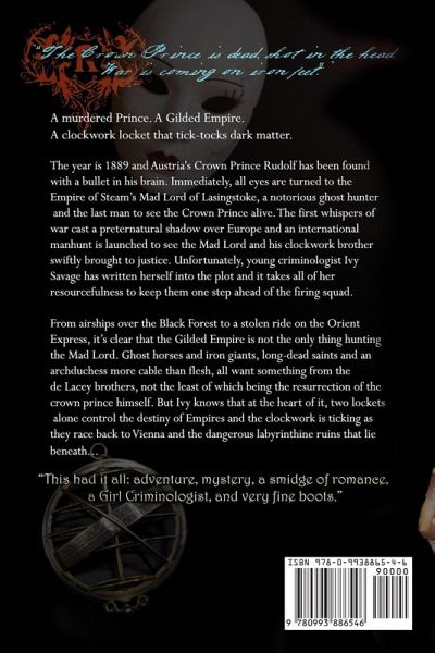 "The Crown Prince is dead, shot in the head. War is coming on iron feet." A murdered Prince. A Gilded Empire. A clockwork locket that tick-tocks dark matter. The year is 1889 and Austria's Crown Prince Rudolf has been found with a bullet in his brain. Immediately, all eyes are turned to the Empire of Steam's Mad Lord of Lasingstoke, a notorious ghost hunter and the last man to see the Crown Prince alive. As the first whispers of war cast a preternatural shadow over Europe, an international manhunt is launched to bring the Mad Lord and his clockwork brother to justice. Unfortunately, young criminologist Ivy Savage has written herself into the plot and it takes all of her resourcefulness to keep them one step ahead of the firing squad. From airships over the Black Forest to a stolen ride on the Orient Express, it's clear that the Gilded Empire is not the only thing hunting the Mad Lord. Ghost horses and iron giants, long-dead saints and an archduchess more cable than flesh - all want something from the de Lacey brothers, not the least of which being the resurrection of the crown prince himself. But Ivy knows that at the heart of it, two lockets alone control the destiny of Empires and the clockwork is ticking as they race back to Vienna and the dangerous labyrinth that lies beneath...