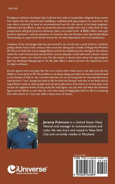 Prodigious software developer Jake Coltrane lives with an inoperable malignant brain tumor. He's spent the last several years building a sophisticated spy program to search for the man who's rumored to have an unconventional cure for the cancer in his head: enigmatic billionaire Jericho Black, a man so powerful and inaccessible that only a risky theft of epic proportions will grab Jericho's attention. Jake's successful heist of $400 million does get Jericho's attention-and the attention of someone else: the Russian mob. Specifically, Alexei Voznesensky, an upper-level hitman known for his dark disposition and cruel tendencies. Unaware of the real danger Jake has put himself in, he checks into a posh hotel to celebrate pulling off the heist of the century with some fine dining and a bottle of Pappy Van Winkle's 20. There he finds the not-to-happy Alexei and the formidable Jericho waiting for him. Alexei wants the mob's money back, but Jericho's curious why Jake would take such a drastic chance for a mere rumor of a miracle cure. He also wants to know more about the spy program Jake has developed. Bargaining for his life, Jake offers a deal to Jericho: the mysterious cure for Jake's software. Jericho agrees and cures Jake, but the cure comes with a twist and a cost. Jake now has the ability to come back to life. The problem is, he keeps dying, and when he does, he finds himself in the bowels of hell, on the run from demons set on torturing him for eternity. And every time Jericho's "cure" brings him back to life, he finds the Russian mob hot on his heels and an angry Alexei ready to destroy Jake and everyone Jake loves. If he wants to survive, Jake must escape the eighteen levels of hell, pacify the mob, figure out just who and what the shadowy figure Jericho Black is, and why the cure that keeps bringing Jake back to life is inundating him with visions of a tiny man with a nasty sense of humor.