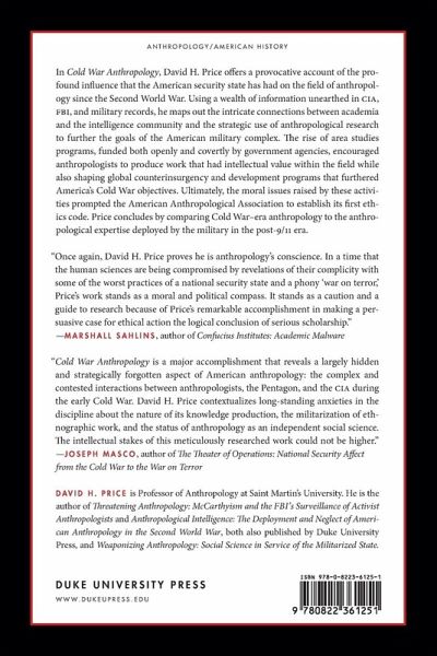 David H. Price uses information from CIA, FBI, and military records to map the connections between academia and the strategic use of anthropological research to further the goals of the U.S. military and outline the major influence the American security state has had on the field of anthropology.