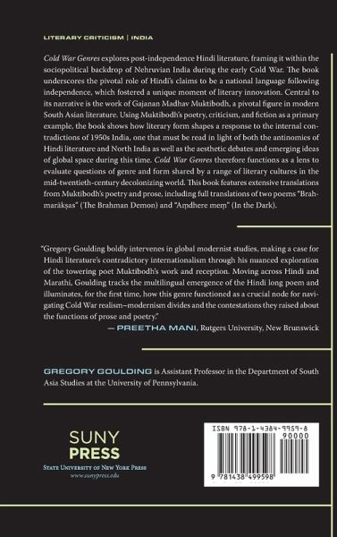 Cold War Genres explores post-independence Hindi literature, framing it within the sociopolitical backdrop of Nehruvian India during the early Cold War. The book underscores the pivotal role of Hindi's claims to be a national language following independence, which fostered a unique moment of literary innovation. Central to its narrative is the work of Gajanan Madhav Muktibodh, a pivotal figure in modern South Asian literature. Using Muktibodh's poetry, criticism, and fiction as a primary example, the book shows how literary form shapes a response to the internal contradictions of 1950s India, one that must be read in light of both the antinomies of Hindi literature and North India as well as the aesthetic debates and emerging ideas of global space during this time. Cold War Genres therefore functions as a lens to evaluate questions of genre and form shared by a range of literary cultures in the mid-twentieth-century decolonizing world. This book features extensive translations from Muktibodh's poetry and prose, including full translations of two poems "Brahmar¿k¿as" (The Brahman Demon) and "A¿dhere me¿" (In the Dark).