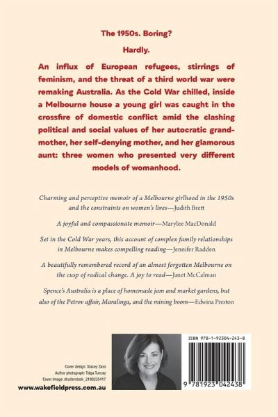 The 1950s. Boring? Hardly. An influx of European refugees, stirrings of feminism, and the threat of a third world war were remaking Australia. As the Cold War chilled, inside a Melbourne house a young girl was caught in the crossfire of domestic conflict amid the clashing political and social values of her autocratic grandmother, her self-denying mother, and her glamorous aunt; three women who presented very different models of womanhood.