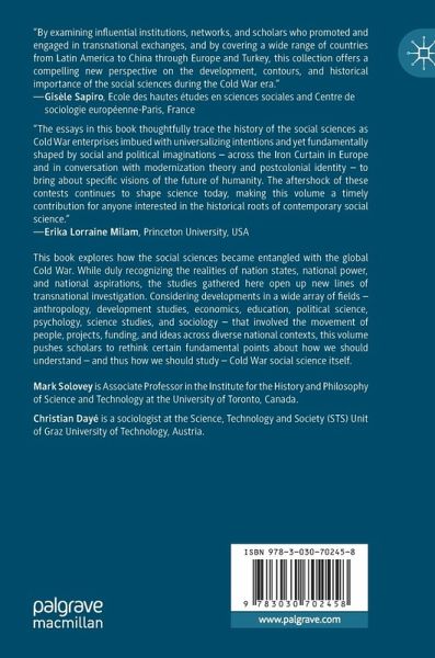 This book explores how the social sciences became entangled with the global Cold War. While duly recognizing the realities of nation states, national power, and national aspirations, the studies gathered here open up new lines of transnational investigation. Considering developments in a wide array of fields - anthropology, development studies, economics, education, political science, psychology, science studies, and sociology - that involved the movement of people, projects, funding, and ideas across diverse national contexts, this volume pushes scholars to rethink certain fundamental points…mehr
