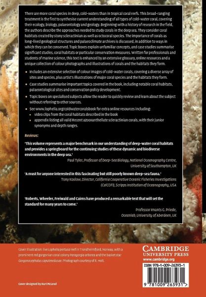 There are more coral species in deep, cold-waters than in tropical coral reefs. This broad-ranging treatment is the first to synthesise current understanding of all types of cold-water coral, covering their ecology, biology, palaeontology and geology. Beginning with a history of research in the field, the authors describe the approaches needed to study corals in the deep sea. They consider coral habitats created by stony scleractinian as well as octocoral species. The importance of corals as long-lived geological structures and palaeoclimate archives is discussed, in addition to ways in which they can be conserved. Topic boxes explain unfamiliar concepts, and case studies summarise significant studies, coral habitats or particular conservation measures. Written for professionals and students of marine science, this text is enhanced by an extensive glossary, online resources, and a unique collection of colour photographs and illustrations of corals and the habitats they form.