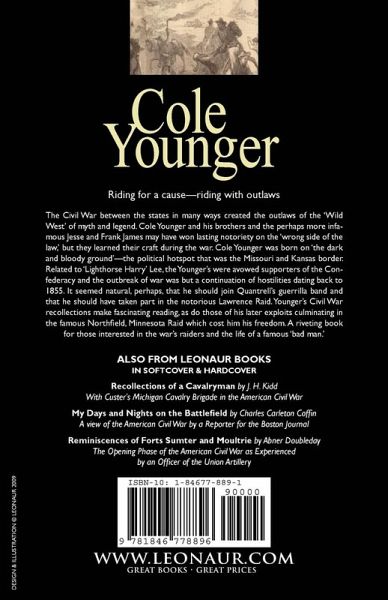 Riding for a cause-riding with outlaws The Civil War between the states in many ways created the outlaws of the 'Wild West' of myth and legend. Cole Younger and his brothers and the perhaps more infamous Jesse and Frank James may have won lasting notoriety on the 'wrong side of the law,' but they learned their craft during the war. Cole Younger was born on 'the dark and bloody ground'-the political hotspot that was the Missouri and Kansas border. Related to 'Lighthorse Harry' Lee, the Younger's were avowed supporters of the Confederacy and the outbreak of war was but a continuation of hostilities dating back to 1855. It seemed natural, perhaps, that he should join Quantrell's guerrilla band and that he should have taken part in the notorious Lawrence Raid. Younger's Civil War recollections make fascinating reading, as do those of his later exploits culminating in the famous Northfield, Minnesota Raid which cost him his freedom. A riveting book for those interested in the war's raiders and the life of a famous 'bad man.'