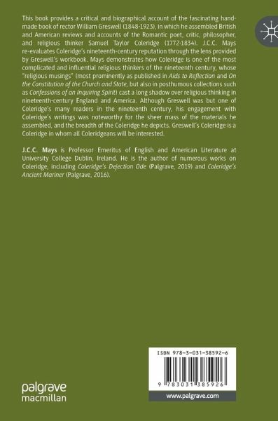 This book provides a critical and biographical account of the fascinating hand-made book of rector William Greswell (1848-1923), in which he assembled British and American reviews and accounts of the Romantic poet, critic, philosopher, and religious thinker Samuel Taylor Coleridge (1772-1834). J.C.C. Mays re-evaluates Coleridge's nineteenth-century reputation through the lens provided by Greswell's workbook. Mays demonstrates how Coleridge is one of the most complicated and influential religious thinkers of the nineteenth century, whose "religious musings" (most prominently as published in Aids to Reflection and On the Constitution of the Church and State, but also in posthumous collections such as Confessions of an Inquiring Spirit) cast a long shadow over religious thinking in nineteenth-century England and America. Although Greswell was but one of Coleridge's many readers in the nineteenth century, his engagement with Coleridge's writings was noteworthyfor the sheer mass of the materials he assembled, and the breadth of the Coleridge he depicts. Greswell's Coleridge is a Coleridge in whom all Coleridgeans will be interested.