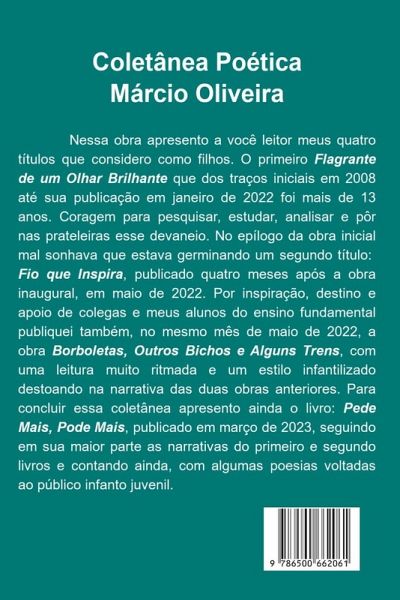 Nessa obra apresento a você leitor meus quatro títulos que considero como filhos. O primeiro Flagrante de um Olhar Brilhante que dos traços iniciais e