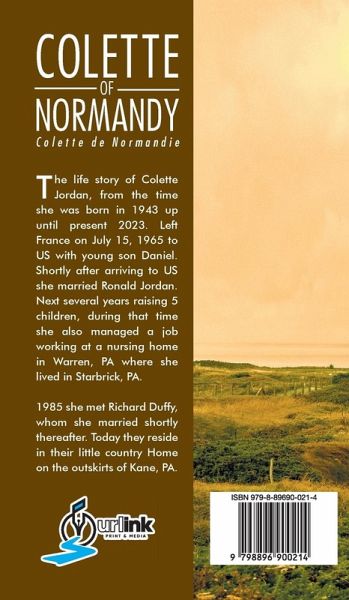 The life story of Colette Jordan, from the time she was born in 1943 up until present 2023. Left France on July 15, 1965 to US with young son Daniel. Shortly after arriving to US she married Ronald Jordan. Next several years raising 5 children, during that time she also managed a job working at a nursing home in Warren, PA where she lived in Starbrick, PA. 1985 she met Richard Duffy, whom she married shortly thereafter. Today they reside in their little country Home on the outskirts of Kane, PA.