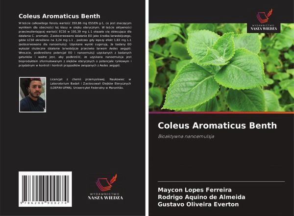 W te¿cie cäkowitego fenolu warto¿¿ 350,86 mg ESSEN g-1, co jest znacz¿cym wynikiem dla obecno¿ci tej klasy w olejku eterycznym. W te¿cie aktywno¿ci przeciwutleniaj¿cej warto¿¿ EC50 w 195,39 mg L-1 okazäa si¿ obiecuj¿ca dla dziäania C. aromatic. Zaobserwowano dziäanie EO jako ¿rodka larwobójczego, gdzie LC50 okre¿lono na 3,24 mg L-1 , podczas gdy lepszy efekt 1,83 mg L-1 zaobserwowano dla nanoemulsji. Uzyskane wyniki sugeruj¿, ¿e badany EO wykazä skuteczne dziäanie larwobójcze przeciwko larwom Aedes aegypti. Wreszcie, podkre¿lono potencjä EO i nanoemulsji uzyskanych z badanych gatunków i wäne jest, aby podkre¿li¿, ¿e uzyskana nanoemulsja jest bioproduktem sformu¿owanym z olejków eterycznych o potencjale rynkowym i przydatnym w kontroli i kontroli przypadków zwi¿zanych z Aedes aegypti.