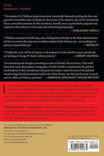 In this exploration of Colin Powell's career and character, Christopher D. O' Sullivan reveals several broad themes crucial to American foreign policy and yields insights into the evolution of American foreign and defense policy in the post-Vietnam, post-Cold War eras. In addition, O'Sullivan explores the conflicts and debates between different foreign policy ideologies such as neo-conservatism and realism.