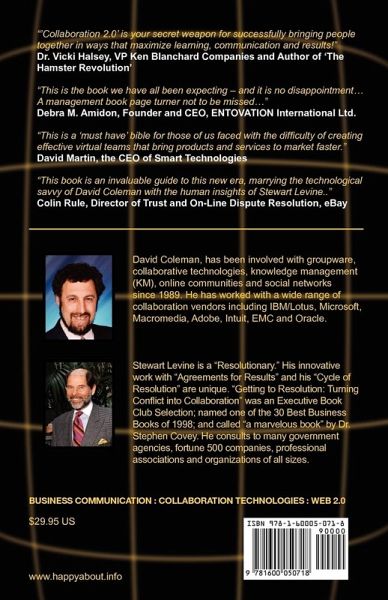 With the advent of Web 2.0, we are seeing dramatic changes in the way people interact with each other via the Internet. Blogs, Wikis, online communities, social networks, and distributed teams are just some of the ways these technologies are shaping our interactions. David Coleman is an expert in the area of collaborative processes and technologies and Stewart Levine is an expert on how to get people to work together more effectively. Together David and Stewart encompass a holistic view of these new technologies and processes and help groups, teams, departments and organizations to work better and more effectively over time and distance.…mehr