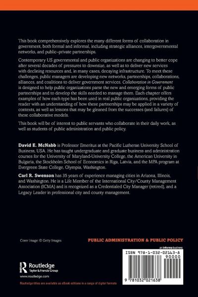 This book comprehensively explores the many different forms of collaboration in government, both formal and informal, including strategic alliances, intergovernmental networks, and public-private partnerships. Contemporary US governmental and public organizations are changing to better cope after several decades of pressures to downsize, as well as to deliver new services with declining resources and, in many cases, decaying infrastructure. To meet these challenges, public managers are developing new networks, partnerships, collaborations, alliances and coalitions to deliver government services. Collaboration in Government is designed to help public organizations parse the new and emerging forms of public partnerships and to develop the skills needed to manage them. Each chapter offers examples of how each type has been used in real public organizations, providing the reader with an understanding of how these partnerships may be applied in a variety of contexts, as well as lessons that may be gleaned from the successes (and failures) of these collaborative models. This book will be of interest to public servants who collaborate in their daily work, as well as students of public administration and public policy.