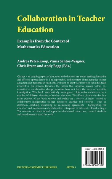 Prologue.- One: Investigating Initial and Ongoing Teacher Education.- 1 A Journey towards Collaboration.- 2 Collaboration and Sharing as Crucial Elements of Professional Development.- 3 The Evolution of an Interdisciplinary Collaborative for Pre-Service Teacher Reform-Research Informs Practice.- 4 An Approach to Collaboration in Elementary Pre-Service Teacher Education.- Two: Further Issues in Teacher Education.- 5 Classroom Coaching as a Collaborative Activity in Professional Development.- 6 A Collaborative Project Using Narratives-What Happens when Pupils Work on Mathematical Investigations?.- 7 The Role of Collaboration for Developing Teacher-Researchers.- 8 Sharing Teacher Training Methods-The Case of Problematic Learning Situations in Geometry.- Three: Working with Other Important Partners in Different Socio-Cultural Contexts.- 9 Co-Learning in the Collaborative Mathematics Classroom.- 10 Collaborative Practice with Parents-The Role of the Researcher as Mediator.- 11 The Role of the Principal in Mathematics Teacher Development-Bridging the Dichotomy between Leadership and Collaboration.- 12 Intercultural Collaboration: A Celebration of Commonalties and Differences.- Four: Alternative Perspectives on Collaboration.- 13 A Case for Collaborative Staff Development-A Path Layered while Walking.- 14 Collaborative Reflection through Sharing Significant Incidents.- 15 More than Collaboration: Concern, Connection, Community and Curriculum.- Epilogue.
