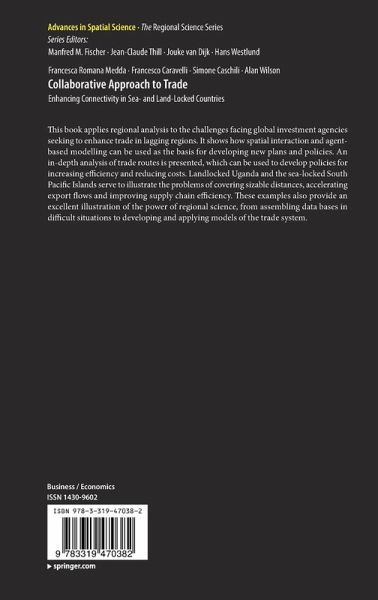 This book applies regional analysis to the challenges facing global investment agencies seeking to enhance trade in lagging regions. It shows how spatial interaction and agent-based modelling can be used as the basis for developing new plans and policies. An in-depth analysis of trade routes is presented, which can be used to develop policies for increasing efficiency and reducing costs. Landlocked Uganda and the sea-locked South Pacific Islands serve to illustrate the problems of covering sizable distances, accelerating export flows and improving supply chain efficiency. These examples also provide an excellent illustration of the power of regional science, from assembling data bases in difficult situations to developing and applying models of the trade system.
