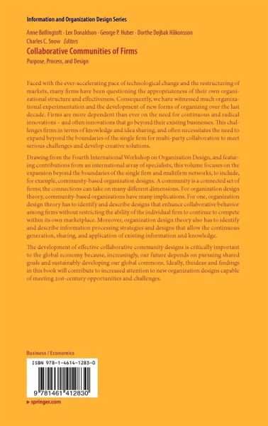 Drawing from the Fourth International Workshop on Organization Design, and featuring contributions from an international array of specialists, this volume focuses on the expansion beyond the boundaries of the single firm and multi-firm networks, to include, for example, community-based organization designs. A community is a connected set of firms; the connections can take on many different dimensions. For organization design theory, community-based organizations have many implications. For one, organization design theory has to identify and describe designs that enhance collaborative behavior among firms without restricting the ability of the individual firm to continue to compete within its own marketplace. Moreover, organization design theory also has to identify and describe information processing strategies and designs that allow the continuous generation, sharing, and application of existing information and knowledge.