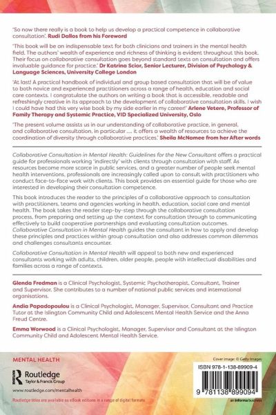 Collaborative Consultation in Mental Health: Guidelines for the New Consultant offers a practical guide for professionals working â indirectlyâ with clients through consultation with staff.