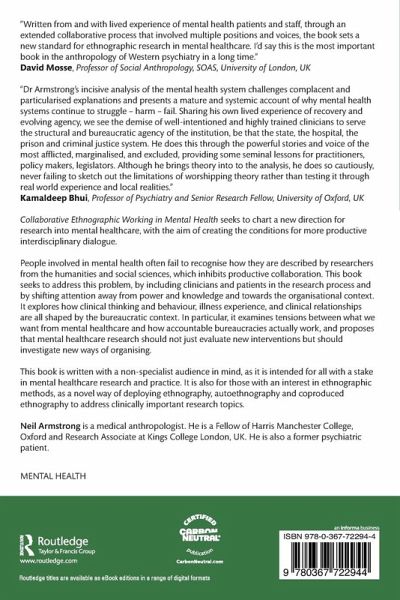 Collaborative Ethnographic Working in Mental Health seeks to chart a new direction for research into mental healthcare, with the aim of creating the conditions for more productive interdisciplinary dialogue.
