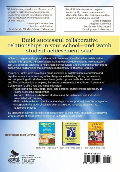 'Hank Rubin translates complex, contextually driven processes into digestible bites. The text is compelling, refreshing, and a joy to read' -Chris Ferguson, Program Associate Southwest Educational Development Laboratory 'Rubin's book provides an eloquent and practical articulation of collaborative leadership and its potential to improve the partnership of communities and public schools'-Wendy Caszatt-Allen, Teacher and Author, Mid-Prairie Middle School, Kalona, IA Written to inspire and support educators in becoming transformative, collaborative leaders, this updated edition of a best-selling resource demonstrates how educators can use collaboration skills to help shape school culture and build and maintain strong schoolwide relationships that contribute meaningfully to students' learning. Visionary Hank Rubin provides a broad overview of collaboration in education and lays the foundation for working with colleagues, establishing strong partnerships, and cooperating with students to achieve goals. Updated with the latest research and filled with practical examples, this resource examines 14 phases of collaboration and helps educators: - Understand the knowledge, skills, and personal characteristics necessary to foster successful collaboration - Nurture relationships between students and the institutions and individuals associated with learning - Build collaborative community relationships that support an instructional agenda - Incorporate the study of collaboration and related reflective activities into leadership practice By applying these vital principles of collaboration to their work, educators will discover what a school of collaborative excellence is capable of achieving.